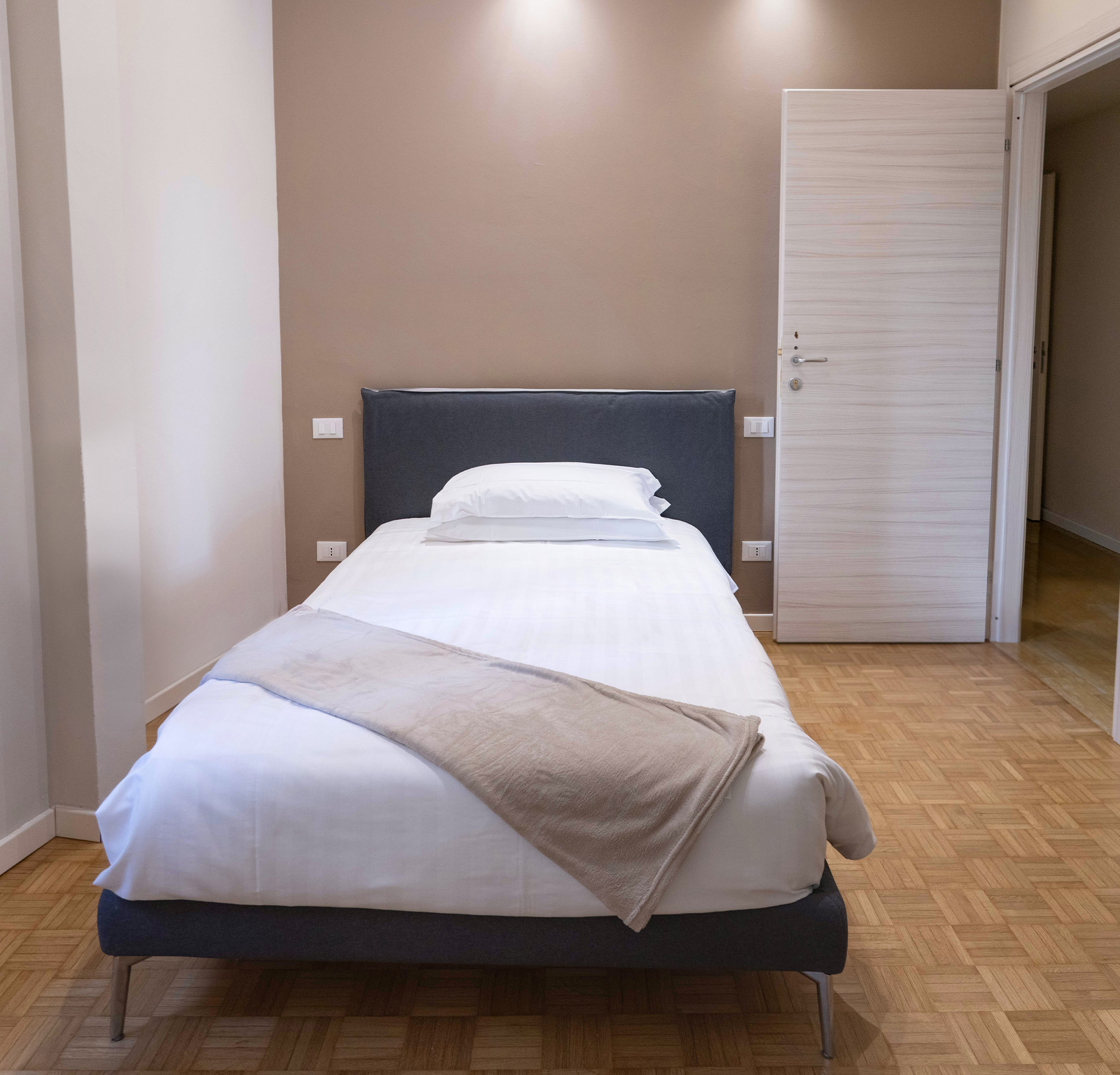 Camera singola arredata in uno stile moderno che coniuga contemporaneità e comfort assoluto. Uno spazio raccolto e funzionale pensato per chi viaggia da solo, senza rinunciare all’eleganza.